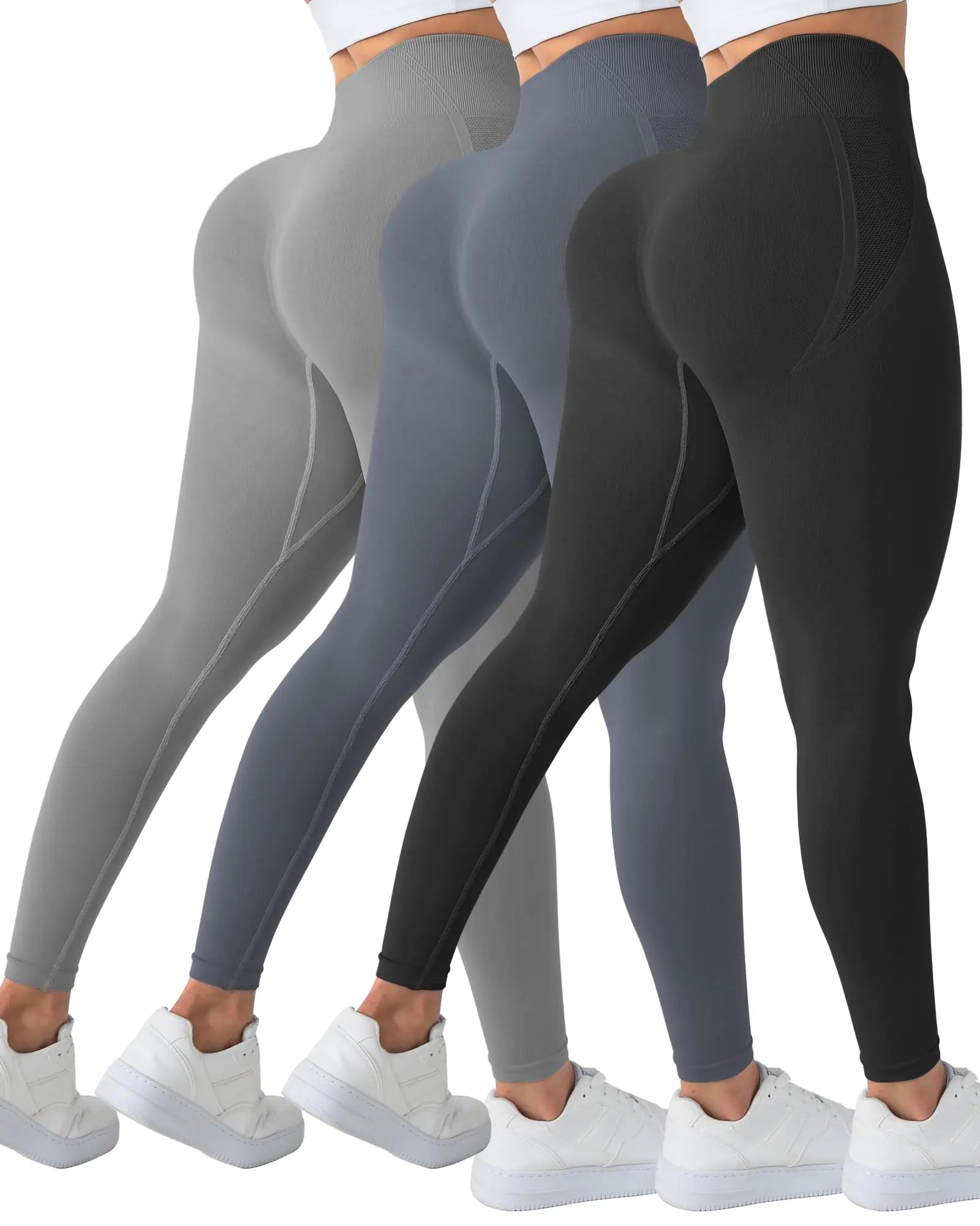 LZYVOO 3 Piece Workout Leggings for Women Butt Lifting Scrunch Butt Seamless Gym Leggings Sets(BlackDGrayLGrayL)